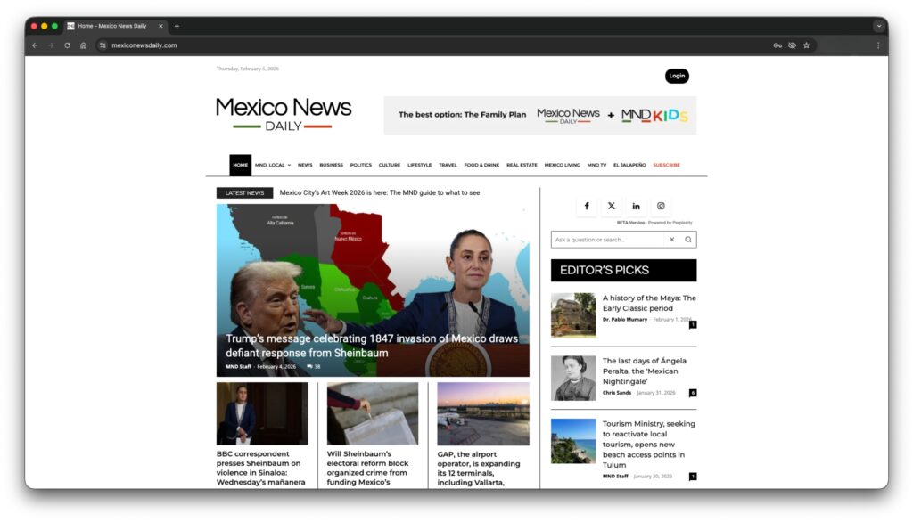 - Publisher: Mexico News Daily (English-language news about Mexico)